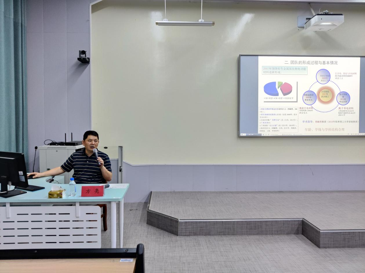 6月9日,桂林理工大学材料科学与工程公司方亮教授到公司进行学术交流活动。活动在公司东校区化学阶梯教室进行,公司经理谭明雄主持活动,区重点实验室副主任黄国保及部分师生参加。