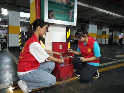 实践活动前期,志愿者们充分准备与活动安排。活动过程,志愿者们按照社区负责人的安排,对社区公共活动区域以及道路进行清洁打扫。同时在社区负责人的安排和引导下分组前往社区居民楼地下停车场检查消防安全设施,排查安全隐患并做好记录。之后,志愿者们向社区居民发放有关党的二十大精神的宣传卡片,用浅显易懂的语言向居民进行党的二十大精神理论宣讲。最后,志愿者们组织社区小朋友认识国旗,介绍国旗的设计含义,手把手教小朋友们手绘出鲜艳的五星红旗,写下文字“我爱我的祖国”并合唱国歌。