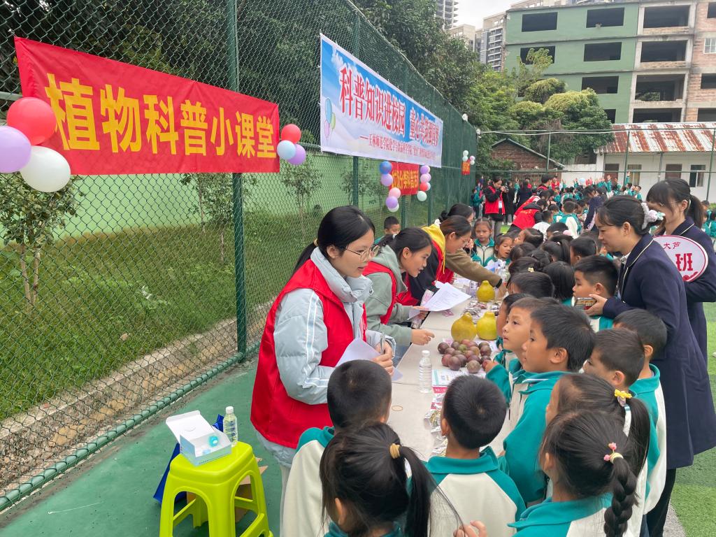 植物科普,芳香弥漫。“这是我们玉林特色的香料植物——八角、桂皮,我们在家里的厨房经常能看到它们的身影......”志愿者娓娓道来,现场为小朋友们讲述玉林本地的特色香料植物,并通过实物展示了几款常见的厨房香料实物如八角、桂皮、花椒、肉桂、香叶、辣椒等,让同学们进行观察、闻香辨别,学习认识我们生活中的香料植物,感受玉林作为“南国香都”的魅力。同时,志愿者引导小朋友们仔细观察植物的外形和特点,为小朋友们科普茉莉花、桂花、容县沙田柚、玉林百香果的相关知识,以及广西农产资源化学与生物技术重点实验室以沙田柚为原料研发而成的柚皮精华滋润洗发露、柚皮精华手工皂、天然柚皮洗发水、除油剂等天然特色产品,一同感受大自然奇妙的果香、花香,探寻自然的美妙和魅力。