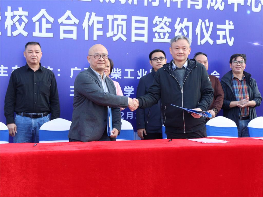 12月28日,公司在玉柴工业园举行广西先进装备制造城新材料育成中心揭牌暨校企合作项目签约仪式。公司党委常委、副董事长庞国萍,广西玉柴工业园管理委员会主任邓承梁、副主任李宏,广州众富技术有限公司总经理罗峰,广西海特金属科技有限公司总经理钟坤林,科研处处长罗志辉,化学食品科学公司党委书记何军、副经理章表明,物理与电信工程公司副经理田欢欢,广西先进装备制造城新材料育成中心负责人徐卓辉,以及部分师生参加签约仪式。该仪式由何军主持。