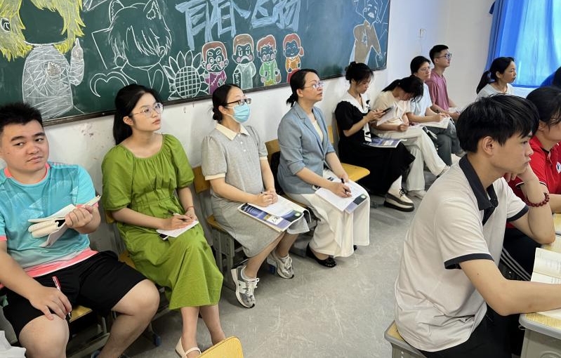 首先,谭明雄一行,听取了该院实习生代表赵宇进行的成果汇报。其汇报课内容完整,重难点突出,层层递进,思路清晰,课件制作简洁、精美,受到老师们的一致好评。