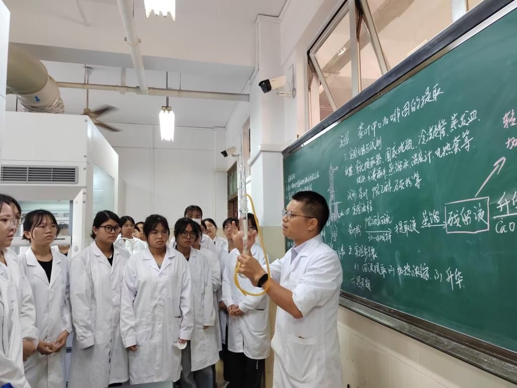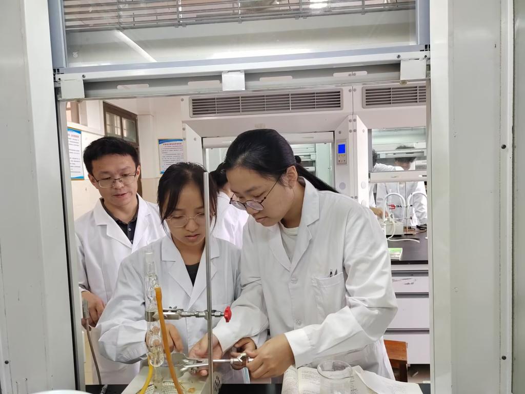 21级非师范专业员工在樊军组织下上午观看相关实验教学视频,下午进行SEM相关实验操作。22级全体员工于公司格物楼化学实验教学中心无机化学实验室、有机化学实验室和分析化学实验室开展相关实践课程。莫再勇、范方方两位老师负责指导员工开展两种钴配合物的制备路线设计与实验操作;邵泰明、胡琼两位老师负责指导员工进行茶叶中的活性成分提取工艺设计与与实验操作;曾楚杰、施灿璨两位老师负责指导员工进行分光光度法测定微量铁的方法设计与实验操作。实验前负责教师强调实验安全注意事项,员工们在指导下完成各项实验基本操作。23级分上下午两批次在公司虚拟仿真实验室进行实践活动,由杜琨指导并安排员工进行红外吸收光谱仪虚拟仿真实验。