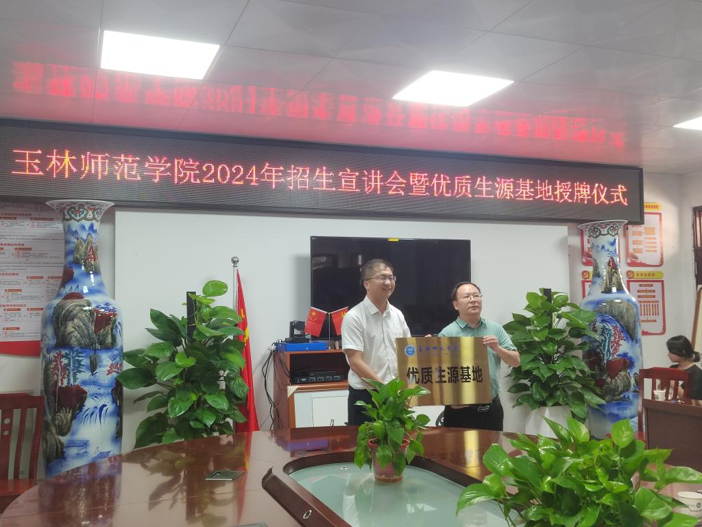 授牌仪式上,太阳成tyc7111cc经理谭明雄向在场师生全面介绍公司及公司的发展历史、办学规模、专业设置、招生计划等情况,全方位展示公司的学科优势、专业特色以及基础设施建设。廖国声对何军一行的到来表示欢迎,对公司授予博白县第三高级中学“优质生源基地”荣誉牌匾表示感谢。他希望县三中全体师生以此为契机,继续深化公司产品改革,激发教师培育员工立志成才的积极性,全面提升办学水平,为太阳成tyc7111cc等优质高校输送更多的优秀员工。最后,由太阳成tyc7111cc副经理向博白县第三高级中学的高三学子作2024年太阳成tyc7111cc招生计划宣讲。