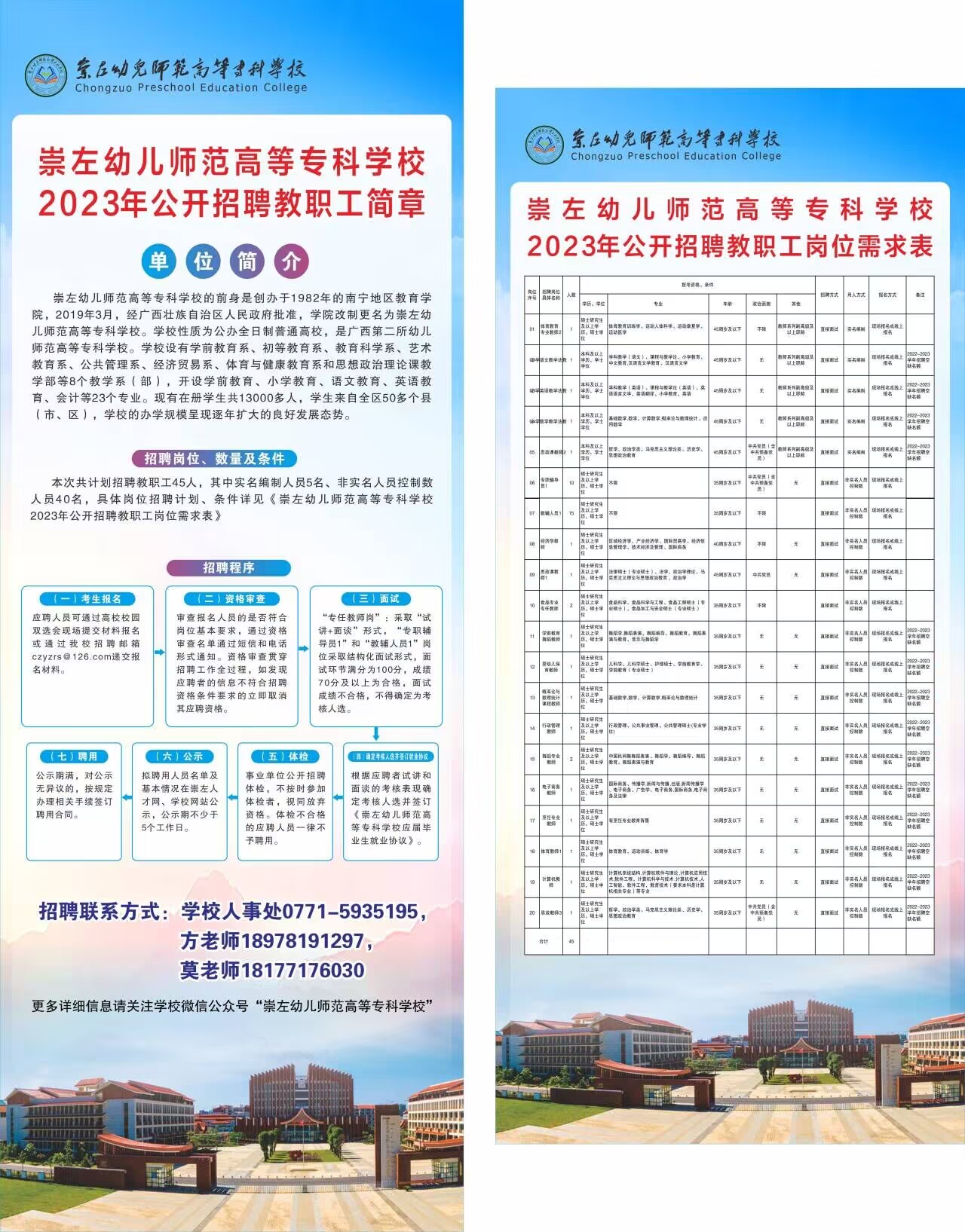 崇左幼儿师范高等专科公司2023年公开招聘教职工简章
